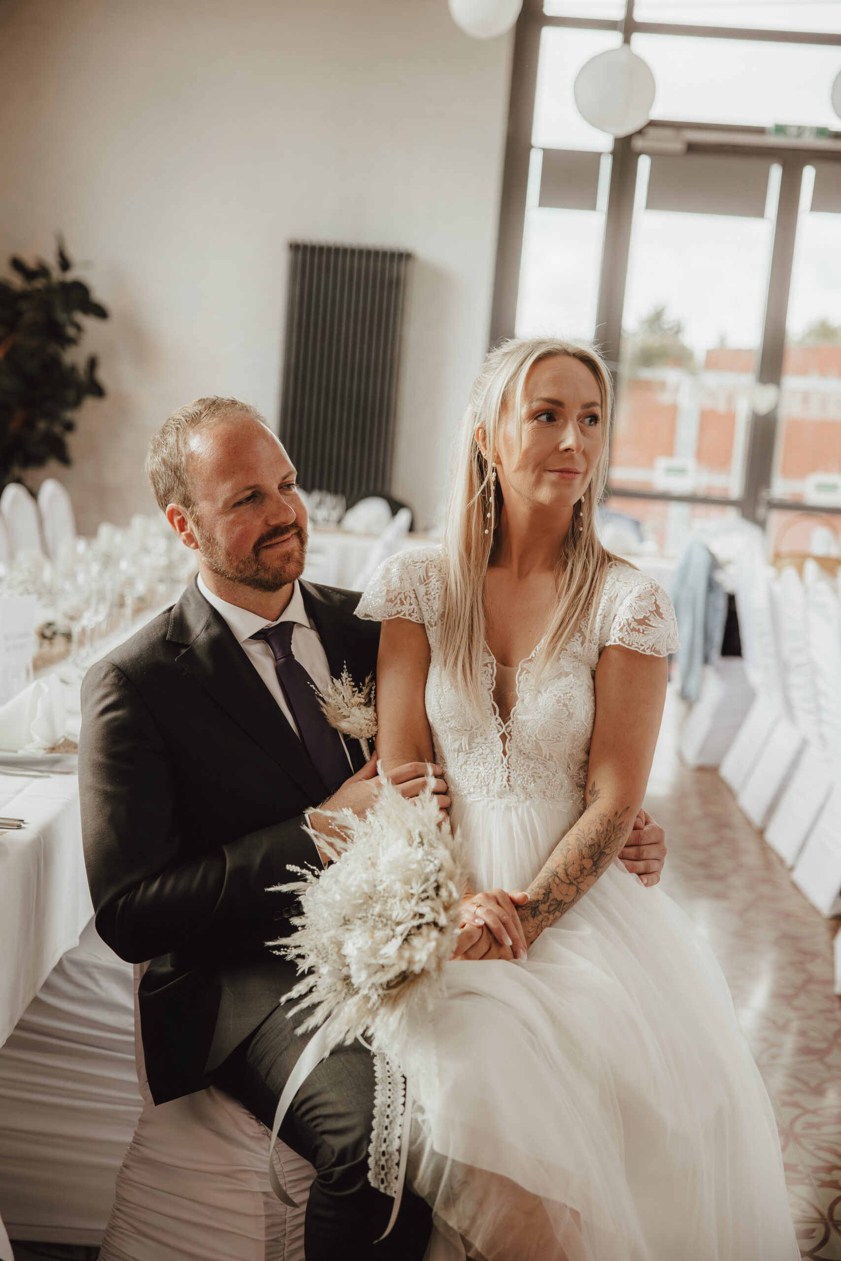 Nach der Trauung fand die Hochzeitsfeier in der Orangerie Aukamm in Wiesbaden statt. Die elegante Eventlocation mit lichtdurchfluteten Räumen und stilvollem Ambiente eignet sich ideal für moderne Hochzeiten im Rhein-Main-Gebiet.